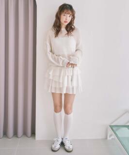今朝は白いレースの段になった可愛いミニスカだた